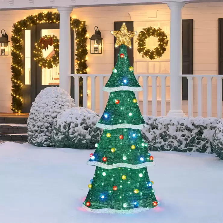 Add a traditional feel to your Christmas decor with this festive Christmas tree decorated with multi colour LED spheres topped with a star. Beautifully illuminated with 220 LED lights and a steady on function, this tree will light up your outdoor and indoor space and exude a festive feel to your environment.