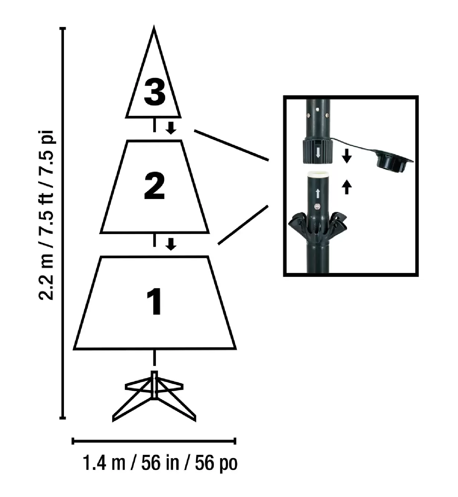 - Measures at 7.5 feet tall with 56 inches diameter base