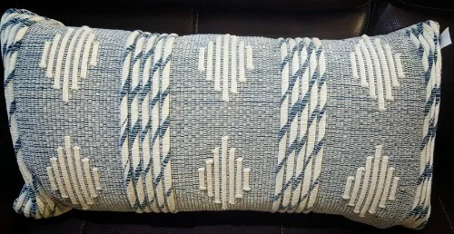 Decorative throw pillow features a unique hand woven Indian pattern.