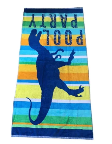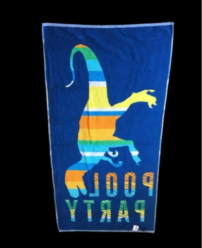 Add a splash of color to your trip to the beach or pool with this Loft Youth Beach Towel ”Dinosaur Pool Party” 30 inches wide x 60 inches in length. The Loft By Loftex Youth Beach Towel will brighten up any day at the beach or pool. You will be pleased with its absorbency and quality, as well as the price. So go ahead and enjoy your day at the beach with the Loft Youth Beach Towel ”Dinosaur Pool Party”. You will not be disappointed!