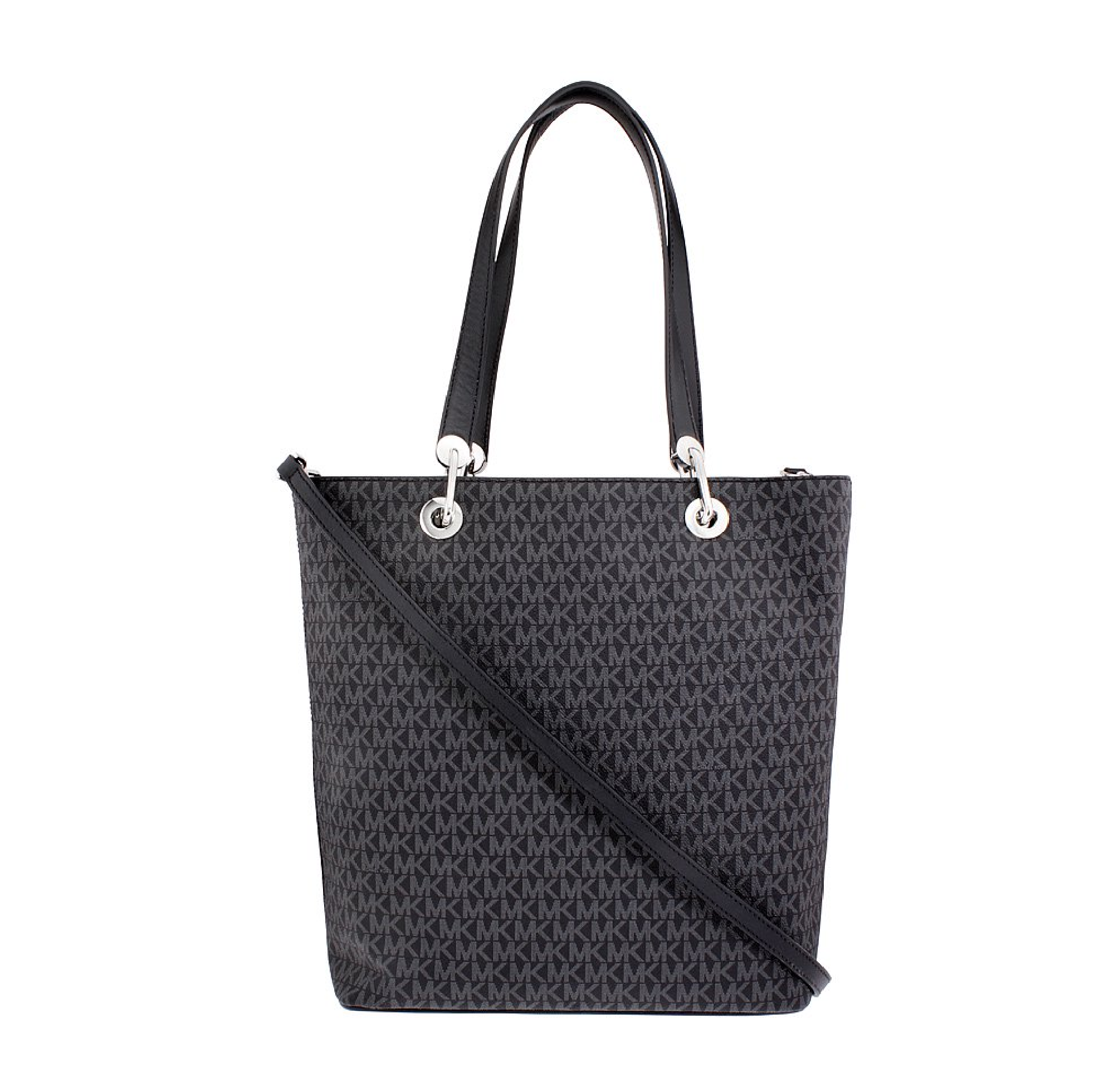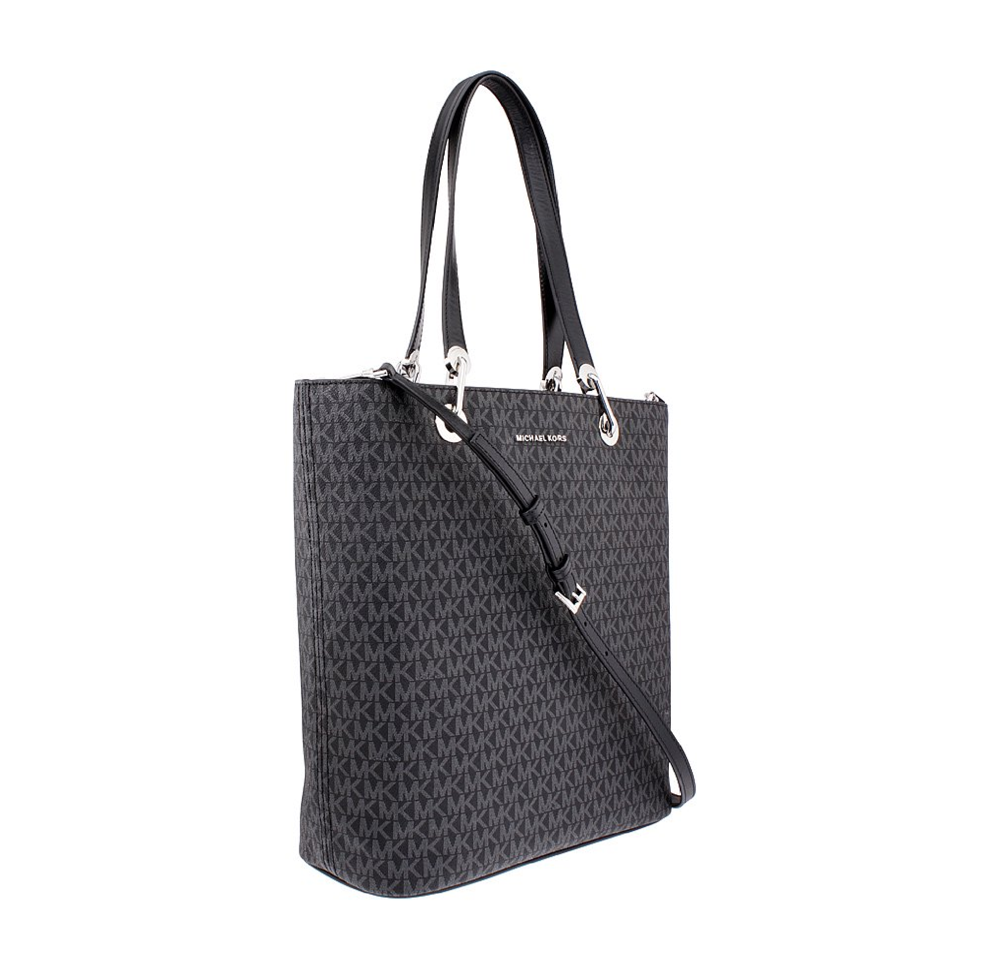 Carry your everyday essentials in timeless style with the Michael Kors Raven Large Signature Twill Tote. Designed with a sleek north–south silhouette, this tote is crafted from durable signature twill fabric in classic black and finished with light gold-tone hardware for a polished look.