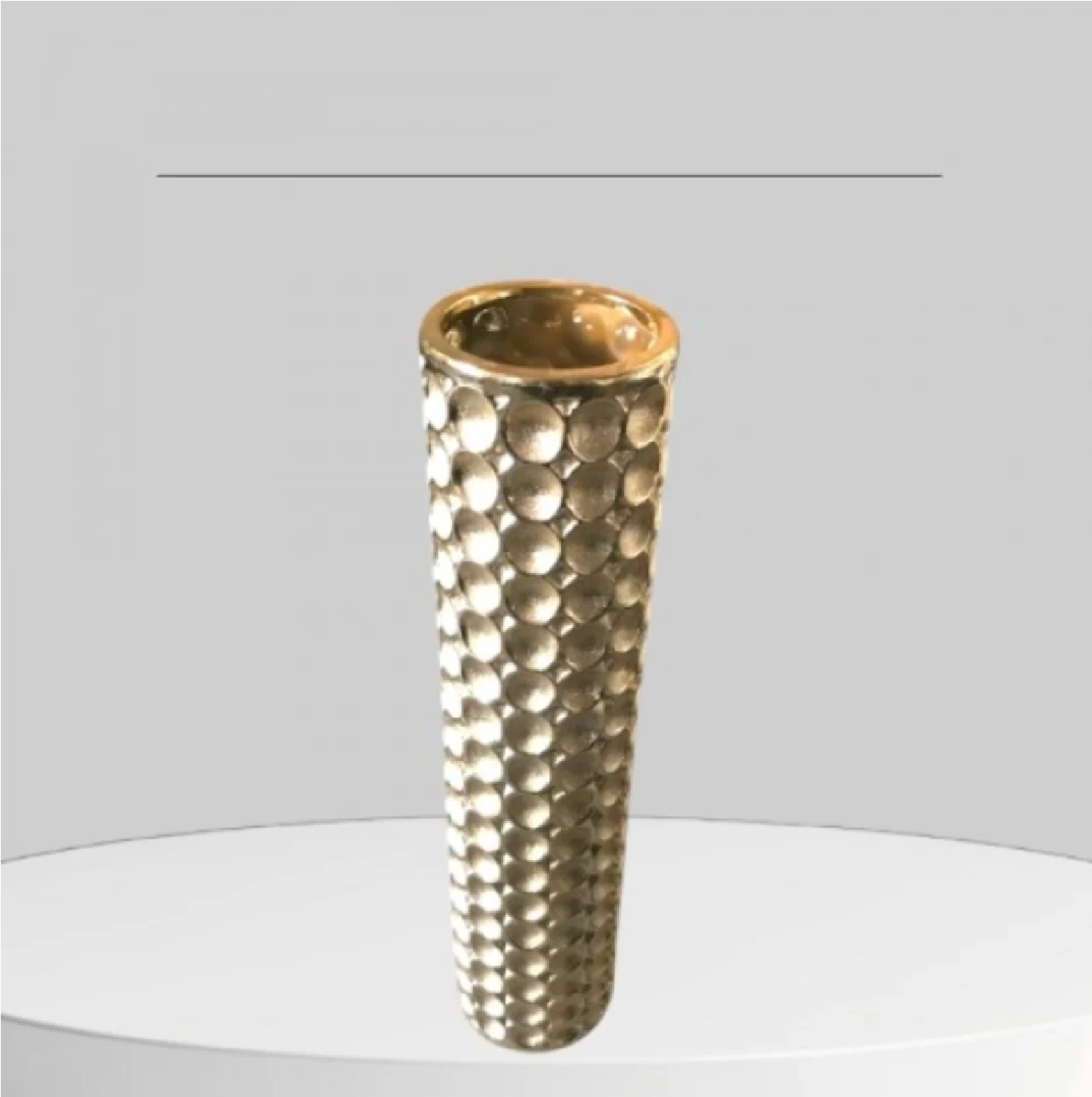 La Casa Bella Gold Ceramic Vase for Mid Century Modern, Contemporary home, office, or event decor. Perfect as floral and plant arrangement holders, or as a standalone accent.