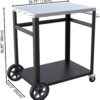 Movable Grill Cart & Pizza Oven Trolly has 2 swivel casters, 2 wheels for easy moving, you can take it anywhere you want, as indoor kitchen pre-station island or outdoor countertop work table. Swivel casters with breaks allow you to easily relocate this utility cart, or keep it stable in place when in use.