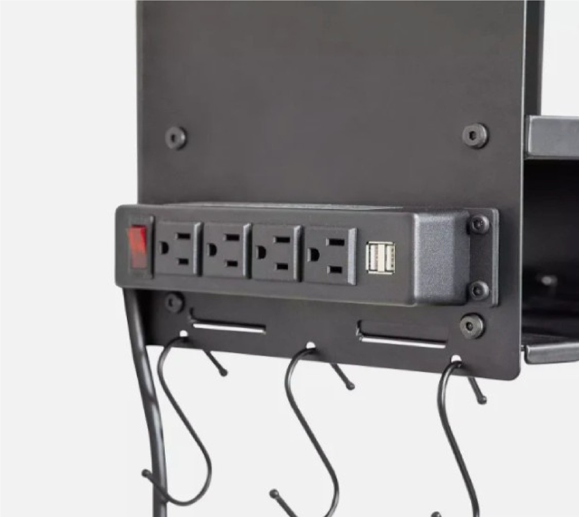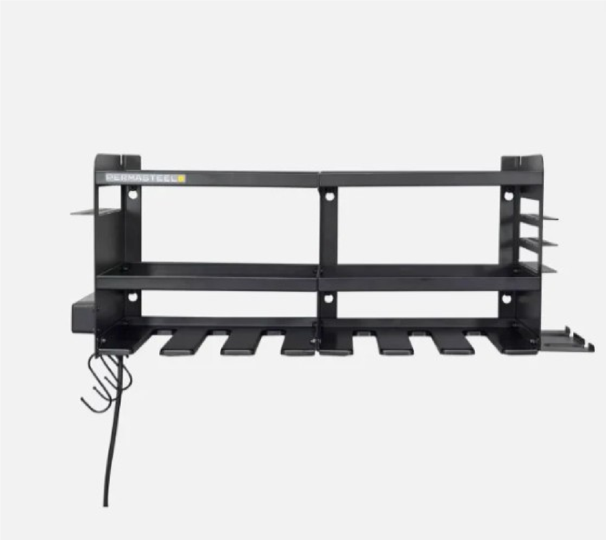 Constructed from heavy-duty steel, it provides strong and reliable support for multiple power tools. The hanging design allows for easy access, saving time and maximizing workspace. Its sleek black finish adds a clean, professional look to any work area.