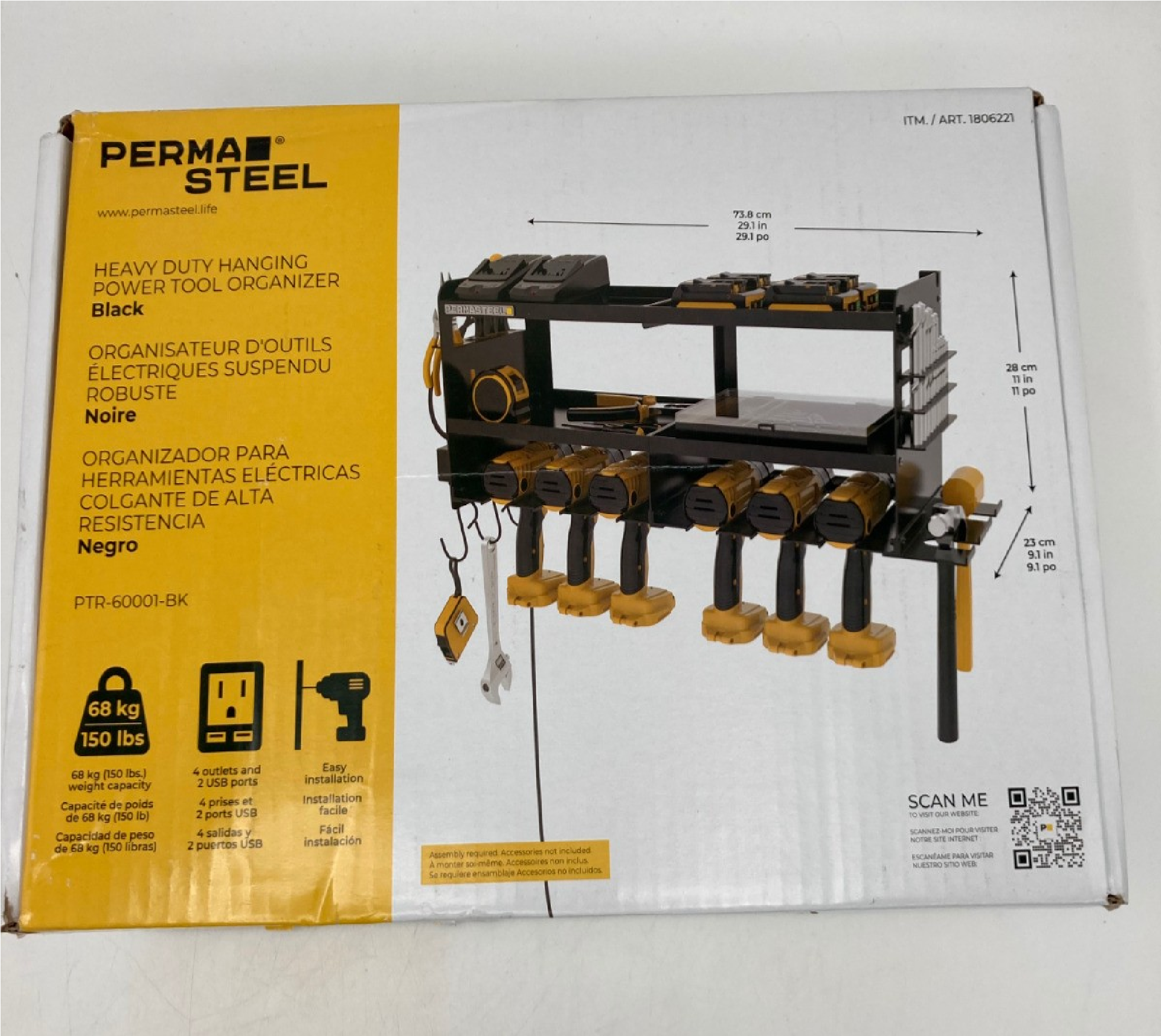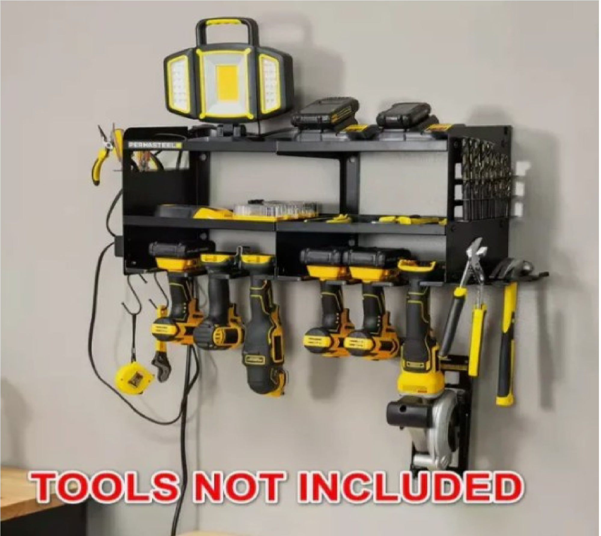 • Keeps power tools easily accessible and neatly stored