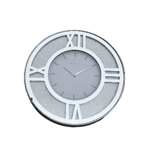 Pinner 18 Inches Crystal Wall Clock For Home Decor – Silver Mirrored Wall Clock
