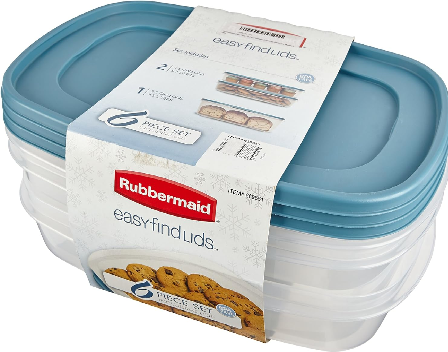 Find the right lid instantly with the Rubbermaid Easy Find Lids Food Storage Set. Designed for everyday convenience, this 6-piece canister set features Rubbermaid’s innovative Easy Find Lid system—lids snap securely onto container bases and onto other same-size lids, keeping everything organized and within easy reach.