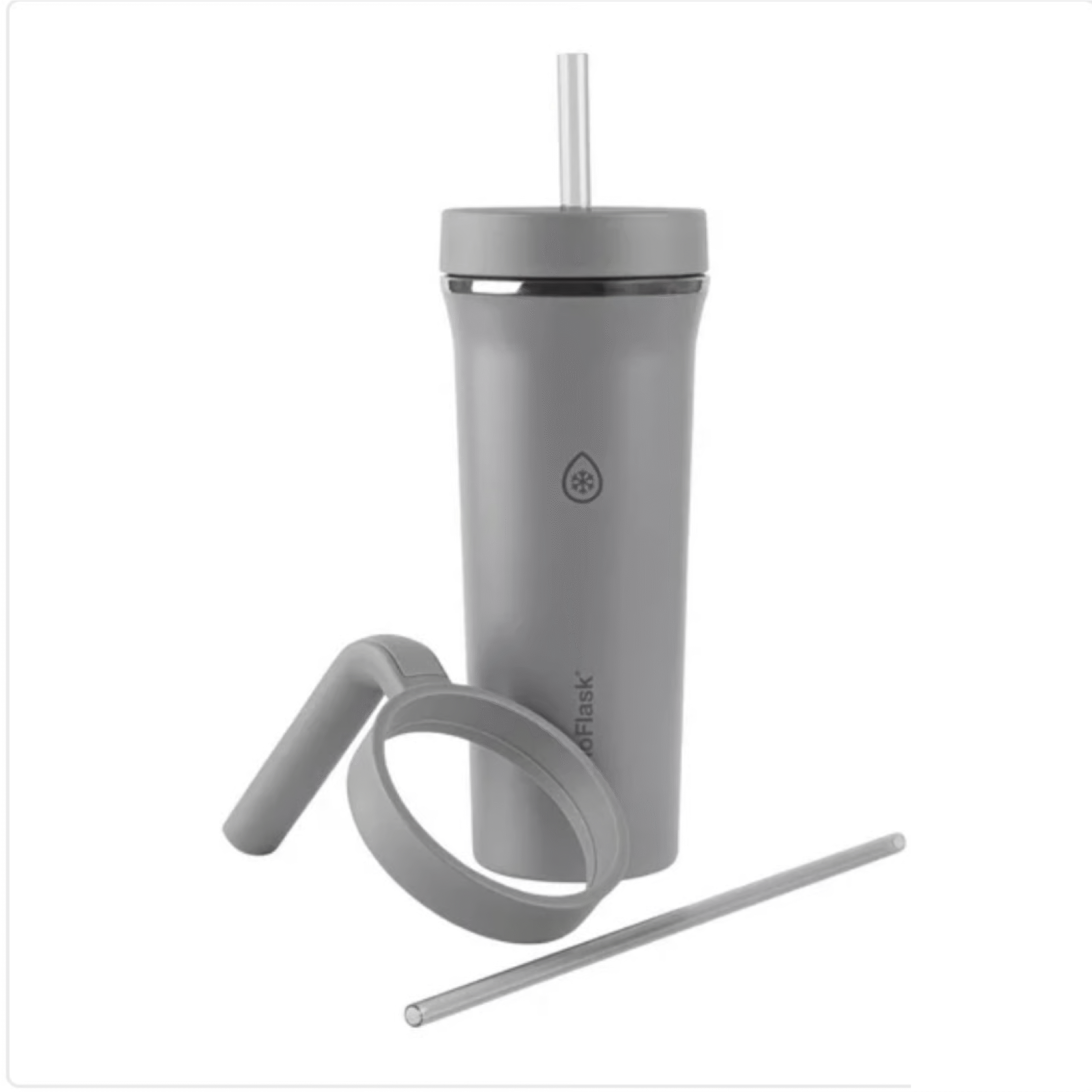 ThermoFlask® 32oz Stainless Steel Straw Tumbler with removable handle keeps you hydrated while on-the-go. Double-wall vacuum insulation keeps the tumbler sweat-free and keeps liquids ice cold for up to 24 hours. This convenient size fits perfectly in most cup holders so you can take it in the car or use while on the treadmill or bike. Great for everyday adventures, the screw on wide mouth lid is easy to clean and fill.
